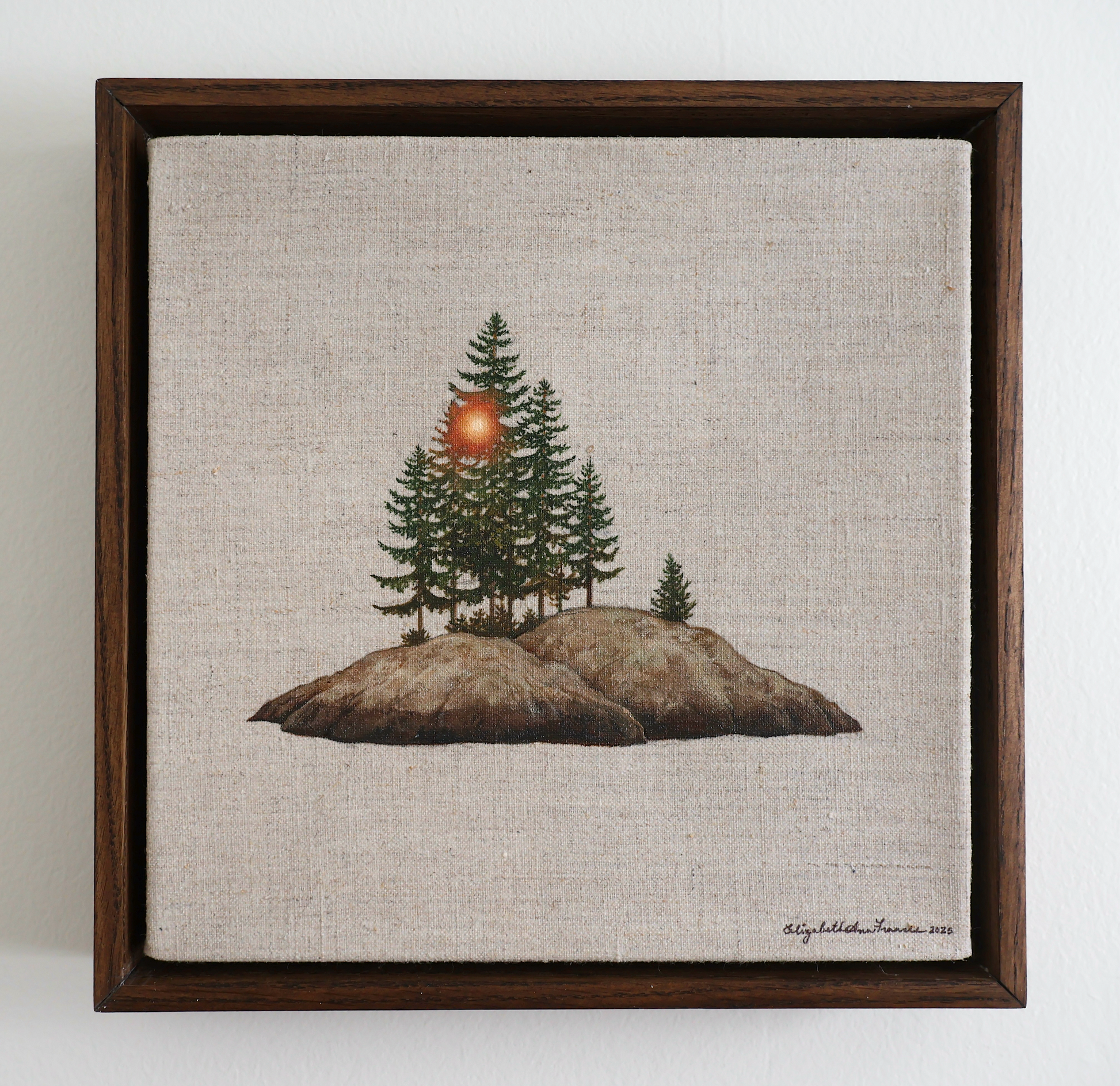 12 × 12” painting framed in a solid wood gallery depth floating frame. Artist signature on the front. Comes with a signed Certificate of Authenticity.